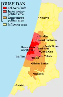 | Gush Dan The Tel Aviv metropolitan area is often referred to as Gush Dan, because the Biblical tribe of Dan lived here. |