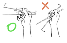 - Pointing at things with your chopsticks is rude. (Pointing at people in general is rude; with chopsticks, doubly so.)