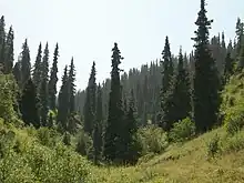 - Kazakhstan – Regular buses and (shared) taxis leave for the Kazakh border to Kegen. The Kegen border crossing is open during summer (May–September/October). Kazakh customs seems to be open 07:30-17:00 (May 2024).