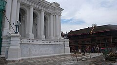 In Nepali, Durbar means "palace" and this is where the monarch was crowned, and from where he ruled. This ancient square, which is under reconstruction as of April 2023, is crowded with palaces and temples, including the current incarnation of the Kasthamandap or "Wooden house" that gives the city its name. The square has been occupied since the construction of a palace around 1000 CE. This site is the most popular UNESCO World Heritage Site in Nepal.