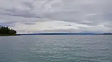Tustumena Lake is the largest lake on the Kenai Peninsula, with 73,000 acres (30,000 ha) of surface area, it is up to 6 mi (9.7 km) wide and up to 950 ft (290 m) deep and there is nowhere to go if you get into trouble. Attempting to paddle it or use smaller powerboats is not recommended due to the remoteness and danger from high wind and waves. Winds tend to blow down from the glacier in the afternoon and the lake has a well-earned reputation for dangerous conditions.