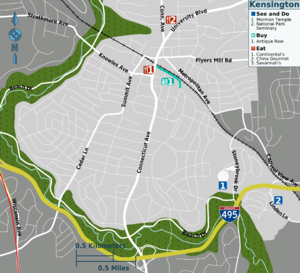 Kensington borders Bethesda to the southwest and Silver Spring to the east.