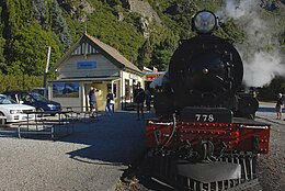 The village is the base for the Kingston Flyer, a tourist-oriented vintage passenger train pulled by one of two steam powered locomotives, one of the last of its kind in New Zealand.