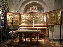 - 🌍 Klosterneuburg Monastery (Stift Klosterneuburg), Stiftsplatz 1, ☏ +43-2243- 411 212, tickets@stift-klosterneuburg.at. Summer: daily 09:00-18:00, winter: daily 10:00-17:00; guided tours daily 10:00-17:00. The monastery was founded in 1114 by Saint Leopold III, the patron saint of Vienna. Over the centuries the monastery was remodeled a number of times; the current appearance dates mostly to the Baroque period. The monastery houses a museum with a collection of Gothic and Baroque art, but its most prized artpiece is the triptych Verduner Altar, painted in 1181 by Nicholas of Verdun. Access to much of the huge complex is by tours only - these depart frequently from the monastery's foyer. Museum and abbey: €10 (adults), €9 (Vienna Card).