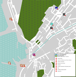 Korsakov (Russian: Корса́ков, kahr-SAH-kuhf; Japanese: 大泊 Ōtomari) is a port town of 36,652 people in Sakhalin Oblast, Russia. It is at the southern tip of the island on the shores of Anniva Bay, some 42 km south of the island's primary city of Yuzhno-Sakhalinsk. While rather drab, with few things to entertain the visitor, it does host one of the two ferry connections between Russia and Japan.