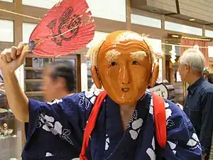 Since the Edo Period, Kurashiki has had an interesting mascot known as Su-inkyo (素隠居) that appears at Achi Shrine's May and October festivals. The Su-inkyo are people wearing masks of an old man and woman carrying fans. If they touch your head, it is said to bring good luck. The masks look jovial and most people approach them for luck, but there are always a few terrified children crying as their parents carry them over to grant them begrudging fortune.