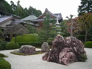 - 🌍 Shōbō-ji (正法寺), 1102 Kasuga-cho Oharano (on the opposite side of the road from Oharano Shrine), ☏ +81 75-331-0105. Daily 09:00-17:00. A Shingon sect temple featuring an impressive statue of the 3-faced thousand armed Kannon and a beautiful, well-kept Zen rock garden. Many of the rocks within the garden were chosen to resemble animals, like a rabbit and frog. ¥300.
