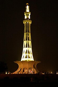 - 🌍 Minar-e-Pakistan. This tower, sometimes called the "Eiffel Tower of Pakistan", was built on the site where in 1940 the creation of a separate state for Muslims was recognized. Located in a park in front of the Fort and Badshahi Mosque.