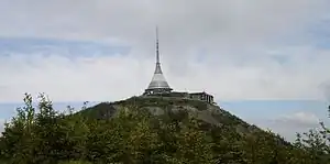 - 🌍 Ještěd Mountain. A well-known landmark of Liberec city with a famous tower on the top. The tower built in the 1960s has a unique hyperboloid shape, naturally extending the silhouette of the mountain. It serves as a hotel and TV transmitter. By good weather you can overlook most of northern Bohemia as well as part of Germany and Poland from the summit. Take a tram No 3 to Horní Hanychov and then either by hiking one of the trails to the top. There was a cable car there, but it has been closed since an accident in 2021. Since 2024 there is a bus (Nr. 79) from Horní Hanychov to a parking space on the hill, from where you walk 20 minutes to the top.