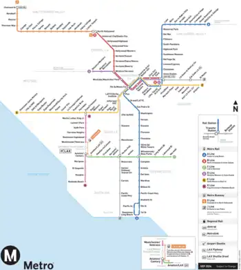 🌍 Union Station, 800 N. Alameda St (next to the Hollywood Freeway (US-101) in downtown Los Angeles). The station is a spectacular example of Mission Revival architecture, with a spacious waiting room and courtyards with outdoor seating, as well as some eating and shopping establishments on-site. It's also well connected to L.A.'s public transit system, with a Metro Red/Purple Line subway station (in the basement), a Metro Gold Line light rail station (on platforms 1 and 2, parallel to the Amtrak and Metrolink trains), and the adjacent Patsaouras Bus Plaza (at the east portal of the station) which serves many local buses and LAX Flyaway shuttles to Los Angeles International Airport. A Budget and Hertz rental car desk is also located in the station; more rental car options are available at LAX.
