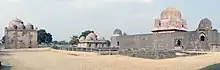- π Tomb and Mosque between Chorkot and Chhappan Mahal. This is south of Ek - khamba Mahal. The complex is on the main road and for persons travelling south it will be on his right side. The complex consists of a square tomb topped with a dome along with a three domed mosque in the back. Nothing is known about the occupant of the tomb.