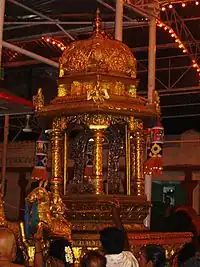 Mass feeding of meals takes place in a large dining hall on the left side of the sanctum during the afternoon. During the night you can purchase food items like puligare, pongal from Annadaata counter in front of the mutt by paying a small amount. A new scheme is introduced with the offerings from one of the devotees. During the night (sometime after 8PM), outside the temple, they provide two different rice items (rice bath, curd rice), with each plate of rice costing ₹2. The quantity and the taste are good. Two plates will be sufficient for one member.