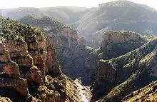 - π Salt River Canyon Wilderness. A deep river canyon, managed by the Tonto National Forest. There are no maintained trails, although the wilderness can be visited anytime. There are 27 sets of rapids and many side creeks, and white-water rafting and kayaking is popular during the spring. From March 1 - May 15 river-running permits are required; group size is limited to 15 people.