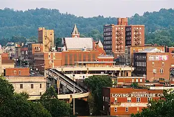- Downtown: Central Business District, High Street shops and restaurants. WVU Downtown Campus occupies the northern end of downtown.