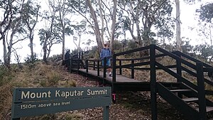 - 🌍 Mount Kaputar Summit Lookout, Summit Road (51 km from Narrabri via Maitland Street southbound, pass Jenkins Street on the left and continue ahead as Old Gunnedah Road, turn left onto Kaputar Road, pass the Bark Hut Campground and Picnic Area on the right, pass the Doug Sky Lookout on the right, pass the West Kaputar Lookout on the left, continue through the four-way intersection, turn left/north onto Summit Road and follow the one-way loop to the carpark.), ☏ +61 2 6792 7300, npws.barwon@environment.nsw.gov.au. Enjoy 360-degree views from the summit of Mount Kaputar, and bring your binoculars and cameras. Short steep section to the top on a wooden staircase. Picnic table at the carpark, but no toilets. 4-wheel-drive access in wet weather, 2-wheel-drive vehicle at other times. Bring warm and waterproof clothes as the weather is unpredictable. A good spot for birdwatching. Walkers can descend to Dawsons Spring via the Mount Kaputar Summit Walk. Free entry.