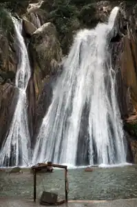 - 🌍 Jhari Pani Falls. It is 5 km away from the library bus stand. From Dehradun to Mussoorie, for Jharipani one has to take a right turn 11 km before Mussoorie. Motorable roads are nicely maintained by the government. To reach the falls from main road. It's a 2-km trek.