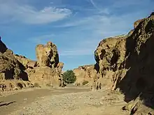 - 🌍 Buellsport, Farm Buellsport C14/D1206 (Situated on the C14 between Walvis Bay and Maltahöhe at the D1206 turnoff to Rietoog and the D864 turnoff to Sesriem), ☏ +264 63 29 33 71, info@buellsport.com. Check-in: 2PM, check-out: 10AM. Two camp sites, one for exclusive use around the ruins of the 🌍 Old Police Station, and one on top of a mountain. Many hiking trails, meticulously signposted, maintained, and documented on paper handouts. Chains, staircases, and handrails on the more difficult sections. Several rock pools are an hour's walk away---20 minutes if you have a 4x4 that can drive some of the way. 285 N$ pppn, children half price, or 1,550 N$ per group, max. 10 people.