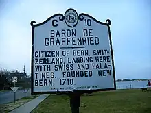 New Bern was founded in 1710 by Swiss and German adventurers led by Baron Christoph von Graffenried from Bern, Switzerland. The coat of arms of the Swiss city included a bear, which lead to the New Bern city mascot being a bear. Bears are a recurring motif within the city - from names of businesses, to statues found throughout, to the "Bear City" nickname for the city itself. Royal Governor William Tryon made New Bern the colonial capital. His restored 18th-century capitol and residence, Tryon Palace, dominates a thirteen-acre garden complex that includes several historical landmarks in the heart of the city.