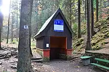 - 🌍 Kyselka spring ("Sour water") (Follow the blue-marked trail from the main square for about 2 km). A spring of mineral water naturally rich on carbon dioxide, with some tables and benches to do a picnic in the woods.