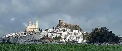 The city, built on a 643-m-high mountain, is visible from afar and because of its unique silhouette motif on many Andalusian postcards. Originating from the Roman Hippa Nova and later the Moorish Wubira, the Moorish castle was taken in 1327 by the troops of the Christian King Alfonso XI. In the 16th century, several people of the city were instrumental in the conquest of Peru and Pánama. Today the city is a local centre for agriculture and is enjoying increasing tourist attention.