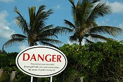 Signs around the Ocean Club warn of the danger of getting bonked on the head by an errant golf ball, which is indeed probably the main security risk on this heavily policed patch of prime property. By Bahamian law, all beaches are public property, but you can expect to get hassled if you go as much as one step on to private manicured lawns.