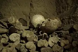 - 🌍 Les Catacombes de Paris (Catacombs of Paris), 1 place Denfert-Rochereau (Denfert-Rochereau 4 6 B ). Tu-Su 9:45-20:30; last admission 19:30; closed Mo and public holidays. One of the most eye-popping sights of Paris, the catacombs represent a network of labyrinthine tunnels, first excavated in the Roman period, that now house the remains of over 6 million burials removed here from the various overcrowded cemeteries and charnel houses all over Paris in the late 18th and early 19th centuries. Well worth a visit: the atmosphere is suitably morbid and gloomy (without being too scary), the dark tunnels containing neatly stacked piles of skulls and long bones. There is a limit to the number of visitors allowed within the Catacombs at one time (200 persons). So, if you arrive just after opening, you must wait until someone exits, approximately 45–60 minutes, before anyone is admitted. Steep stairwell on the exit of the catacombs. Can be challenging for the elderly or the unfit. Tickets can be purchased online at a small premium (€29, includes audioguide), allows you pick a date&time and to skip the long line Adults (audioguide incl.): €29, Reduced rate (audioguide incl.): €27, Children (4 to 17 yo): €5 ; Adults (same day “last minute”): €15, Reduced rate (same day “last minute”): €13, Children (under 18): free; Audioguide: €5.