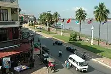 - 🌍 Sisowath Quay (Riverside). Phnom Penh is a bite-sized town, and it's easy to combine sightseeing, shopping, eating and drinking into a single walk through the city. The key to connecting the dots is the town's riverside promenade, Sisowath Quay, which runs along the west bank of the Tonle Sap River. Every morning the Quay kicks off with a life affirming exercise session to some interesting music. It's fronted by a large, long open space with manicured lawns, palm trees and open pathways, all re-done as part of a Japanese funded project to upgrade the flood infrastructure along the river. The built-up side of the street is home to cafés and shops and the better class of bar, and is popular with tourists and expats prepared to run its gauntlet of touts selling drugs, girls, and tuk-tuk rides. The river front (once seen as Phnom Penh's "safe" area) is no longer entirely safe for tourists. Tourist police are supposedly present in plainclothes. The esplanade along the river is also popular with Cambodians, who come here in the cool of the evening to enjoy the quasi-carnival atmosphere. It begins at the river front park opposite the royal palace, and is perhaps best experienced in the early evening. Dawn at Sisowath Quay is also a busy time, with locals doing calisthenics in front of the royal palace, and the sun rising over the river.