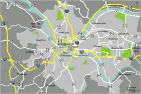 | Oakland Home to the city's "second downtown" as well as many institutions, museums, parks, and the quieter residential and shopping neighborhoods of Shadyside and Squirrel Hill. |