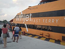 From Cozumel there are two competing companies which ship you across: Winjet and Ultramar. The price is M$260 (Dec 2023), or about US$13/26 one-way/return (Feb 2022). Both companies operate from the main ferry dock 🌍 Ferry Terminal on the south end of the city, just south of the plaza. Boats leave every hour, from 08:00-20:00, and the ride is 30 minutes. A second dock (Muelle Constituyentes) is sometimes used by Ultramar.