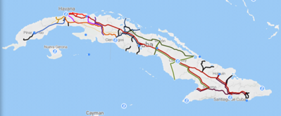 | 1-2 | Habana-Santiago | 2 days | Jaruco, Matanzas, Santa Clara, Guayos, Ciego de Ávila, Camaguey, Las Tunas, Combinado San Luis |