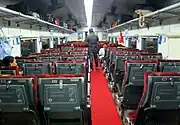 - AC Chair Car (CC), found on most daytime intercity trains, is also quite comfortable, but the seats are not as wide as EC. It is advisable to travel on this class wherever possible, as 2S (see below) can get quite crowded, particularly on busy routes.
