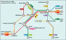 - Former ICN trains (InterCityNeigezug, or Intercity Tilting Train) are now branded as IC trains, as well. They are the express tilt-trains, as luxurious as the IC trains. They run between major cities like Geneva, Lausanne, Biel/Bienne, Zurich, Brig, Lugano, Luzern and Basel.