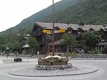 At Lom in Ottadalen branch of Gudbrandsdalen valley route 55 connects to route 15 (Otta-Stryn). Ottadalen valley runs along the south edge of Reinheimen national park, a wide mountain range and plateau. About 1 hour upstream from Lom road 15 connects to Geiranger road which is part of Road 63 (Norway).