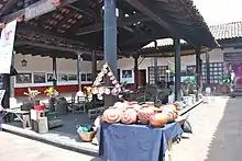 The center of town is made of two plazas. One contains a kiosk with a copper roof, as well as benches and garbage cans painted to look like copper. Facing this plaza are many shops selling copper wares. Next to it is a plain plaza onto which face the town's two main churches, the Parish of Santa Clara and the Chapel del Hospital. Just off the kiosk plaza is the Museo del Cobre (Copper Museum). The museum holds a collection of hand-hammered copper items from the pre-Hispanic period to the winners of the town's annual copper festival each year to the present, as well as national and international competitions. One section contains workshops in which classes are given and it is also home to the Unión de Artesanos (Artisans’ Union) which accredits smiths and products in order to conserve and further develop the craft.