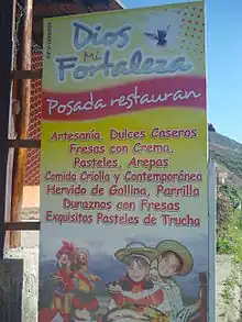 - Dios Mi Fortaleza, A small hostel with matrimonial rooms. Run by an incredibly nice couple, Carolina and Carlos, who are welcoming to travellers. They cook food when you need it at a reasonable price. They also make their own preservatives, including a local wine from blackberries and raspberries.