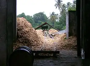 - 🌍 Belmont Estate, Belmont, St Patrick, ☏ +1 473 442 9524. Su-F 8AM-4PM. 300 year old plantation. The main produce is cacao beans, made into chocolate, so there's most to see during the harvest. Pods sprout direct from the tree trunk and are hand-picked after six months, with the main harvest Nov-Feb and a smaller one April-June. The pods are rested for three days, then the beans are scooped out and fermented for a week. They turn brown, and are dried on large roller-trays that can be moved between sunlight and shelter. Now they pass to the chocolate manufacturer, where they're roasted, the outer skin discarded, and the inner "nibs" ground up. The pulp becomes liquid and is blended with cocoa butter, milk and sugar to the required taste. Finally the chocolate is shaped into bars or coatings / fillings and packaged.