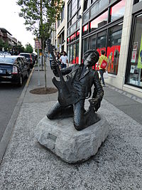 - The π Jimi Hendrix statue rocks out on the sidewalk at the NE corner of E Pine Street and Broadway, Seattle being the birthplace of Hendrix.