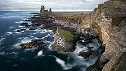 - Londrangar. Sticking out like a castle on the sea, the dikes are what is left of a sunken volcanic crater. Best seen from a viewpoint a couple of kilometres away.
