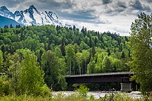 The Stewart-Cassiar Highway, signed as Highway 37, is a 725 km (450 mi) long road that runs from British Columbia Highway 16 (Yellowhead Highway) at Kitwanga, British Columbia to Yukon Highway 1 (Alaska Highway) near Watson Lake, Yukon. Taking this route as opposed to the entire Alaska Highway can save about 210 km (130 mi) for travellers coming from southern British Columbia and the Pacific Northwest of the United States. Almost all of the route is in British Columbia, with exception of the northernmost 3.4 km (2.1 mi) which is in the Yukon. Highway 37 continues southwest from Kitwanga to Terrace and Kitimat.