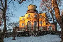 - On the cliff above the Library is the old Stockholm Observatory, which has a fine view of the city to the east. There is also a small café.