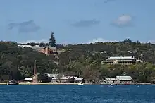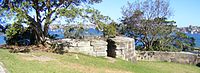 | Georges Head a heritage-listed former military fortification and part of the network of fortifications that were established to protect Sydney Harbour from attack. The buildings in the precinct illustrate the evolution of defence accommodation from the 1871 Barracks (later the Officer's Mess) to 1892 Married Quarters (now Gunshot Alley) to the 1954 separate individual rooms. |