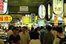 - 🌍 Shilin Night Market (士林夜市) (around Wenlin Road (文林路) and Dadong Road (大東路)). To really taste the flavor of Taiwanese life a trip to a night market is a must, and Shilin is one of the largest. The market began in the 19th century as a collection of vendors trading their goods near a small harbor along the Keelung River. Today the harbor is long gone but the night market has become what is quite possibly the largest collection of vendors and eateries in Taiwan. The night market sprawls across several city blocks, and is considered to be one of the "must-see" attractions in Taipei. Have dinner in one of the eateries in the new food court, then wander north to bargain hunt in a labyrinth of streets and alleys filled with shops and people. Businesses in the night market typically open around 16:00 and stay open well past midnight. To get there, take the MRT Dansuei (Red) Line to Jiantan Station. The food court is located directly across the street from the station with the rest of the night market spreading out to the north. If in doubt, follow the crowds. Quick warning to shopping addicts: the last MRT train leaves Jiantan station around midnight, though the crowds last well past then. Plan ahead. Specialty foods and drinks include: fried buns (生煎包), lemon aiyu jelly (檸檬愛玉), peanut candy (花生糖), bubble tea (珍珠奶茶), snow flakes crushed ice (雪花冰), Taiwanese sausages (香腸), braised stinky tofu (紅燒臭豆腐) and oyster omelet (蚵仔煎).