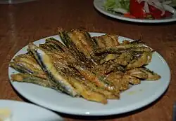 Typical ingredients for a Black Sea meal differ greatly from those of Anatolia. Vakfikebir ekmegi is the local sourdough bread similar to Italian Pane Casareccio. It is baked in a stone oven and can weigh up to 7 kg. Because the Black Sea coast is too moist for the cereals that grow so abundantly in the rest of Anatolia, the main grain variety used in rural communities surrounding Trabzon is maize. Thus cornbread is also a popular dish. Hamsi (Anchovies) are a main staple for the region. They are typically fried and eaten whole. Fishermen from Trabzon catch about one-fifth of the Turkish total. There is even an Anchovies bread (Hamsikoli). The Black Sea region grows 70% of the worlds hazelnut production, and they are also often used in dishes. Some fruits that are grown in the region are cherries, persimmon and kiwi fruit. The Black Sea cuisine is heavy on stews and soups of vegetables and beans. It also includes many dairy dishes such as Kuymak/Muhlama, fresh cow milk and Ayran, and different types of cheeses.