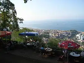 They are hidden within the shopping complex Canbakkal İş Merkezi, a few blocks to the west of Atatürk Alani square. Kahve Durağı and 🌍 Edward's Coffee offer many kinds of coffee and cakes. Cinema-themed 🌍 sineK, next to Royal Cinema also offers western (and Turkish) coffee and tea. It is a kind of hip place where young Trabzonites come to play games after going to the movies. You might need to make reservations (like for most popular or trendy restaurants in the city). 🌍 Time's Coffee Restaurant on Kahramanmaraş Cad. offers coffee and more with a rooftop view of the city. It is on the 7th floor of the Silk Road Business Center. A hot glass of locally grown black tea is served at the many tea gardens throughout the city, most of them located in public parks. The gardens with the best views can be found on Boztepe hill, just southeast of the city center. Other notable tea gardens are located in Fatih park just south of meydan square, and at Atapark just west of the historic walled city. As of Feb 2022, the Ganita tea garden, with its seaside location and view of the old Genoese fort, is closed due to renovation work.