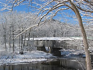 Vermont's cities, towns, and villages are also a scenic attraction in their own right. The state was a part of the original 13 colonies (although whether New Hampshire or New York owned it was up for debate) and is home to some of the oldest buildings in the country. Federalist architecture can be found around much of the state, but particularly in Bennington. Most of the small towns will have a charming town common surrounded by 200 year old churches and town halls. Covered bridges are another man-made attraction and can be found concentrated in the Upper Valley of the Connecticut River.