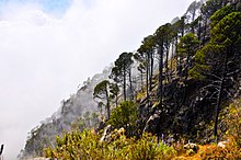 The flora consists of evergreen forests with pine, oak, and fir with numerous orchids and bromeliads. The Canaco tree (Chiranthodendron derbianus) is a protected plant species and the Ornate Hawk-Eagle (Spizaetus ornatos) is a protected bird species.