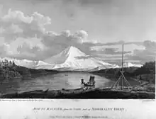 Vancouver entered the Strait of Juan de Fuca - James Cook didn't notice it - on the next day. His orders included a survey of every inlet and outlet on the west coast of the mainland, all the way north to Alaska. Vancouver surveyed the long fjord and named many features for his officers, friends, associates, and his ship Discovery, including π Puget Sound, Port Townsend, Whidbey Island, Mount Rainier, Mount St. Helens, π Mount Baker, π Discovery Passage, Discovery Islands, π Discovery Bay and π Port Discovery, where he beached for maintenance. Most of this work was in small craft propelled by both sail and oar; manoeuvring larger sail-powered vessels in uncharted waters was generally impractical and dangerous. Vancouver took formal possession of all the coast and hinterland contiguous to the Strait of Juan de Fuca, including Puget Sound (under the name of New Georgia) on 4 June 1792, the Kingβs Birthday, at π Possession Point on the southern end of Whidbey Island, and was the second European to enter π Burrard Inlet on 13 June 1792, naming it for his friend Sir Harry Burrard. It is the present-day City of Vancouver's main harbour area, beyond Stanley Park.