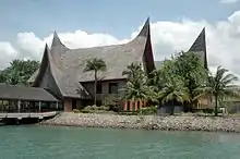 Waterfront City Ferry Terminal, a striking Minangkabau-style construction with sharped pointed eaves, is a visa-on-arrival entry point for Indonesia. Sindo Ferry runs 1 round trip on the weekday and 3 round trips on the weekends and Singapore Public Holiday from Singapore's HarbourFront ferry terminal via Sekupang to Waterfront, taking about 50 minutes including the Sekupang stop. If you miss these, there are many more to Sekupang, from where it's a 15-km trip to Waterfront City.