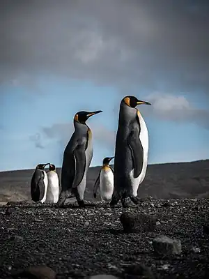 Penguins parading in the French Southern and Antarctic Lands