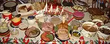 Christmas food is the most traditional part of Nordic cuisine. The Swedish julbord is a Christmas buffet, as a variant of the well-known smörgåsbord. Norwegian Christmas traditions (including pre-Christmas parties - "julebord") varies by region, and variation covers sheep (several varieties), pork, fresh cod and lutefisk ("lye fish"). In Finland you can commonly find Christmas ham (as in Sweden), herring, lye fish and different casseroles (most notably made of potatoes, carrots and Swedish turnips). And in Denmark; stuffed duck, roast pork, caramelized potatoes and sweet and sour red cabbage. The traditional Icelandic Christmas fare is somewhat different from the other Nordic countries including smoked lamb and a range of game birds.
